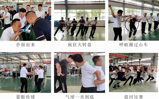 活動(dòng)伊始,萬洲電氣工會(huì)主席、行政部經(jīng)理熊海娟為大家介紹了趣味運(yùn)動(dòng)會(huì)的項(xiàng)目類別和游戲規(guī)則。在大家的期待中,第一個(gè)游戲《撲面而來》開始了,各隊(duì)商量對(duì)策、探討技巧,口含紙張,小心翼翼地運(yùn)轉(zhuǎn)面粉;《瘋狂大轉(zhuǎn)盤》讓大家感到新鮮刺激,6名隊(duì)員緊握長桿,內(nèi)圈外圈默契配合,齊心協(xié)力沖向終點(diǎn);《呼啦圈過山車》比拼隊(duì)員的身體協(xié)調(diào)性和隊(duì)員間的協(xié)作,各大隊(duì)搶速度、比技巧,一不小心鉆進(jìn)圈內(nèi)難以脫身,看得大家忍俊不止;“向左、向右、向前”,隨著隊(duì)長的口令,隊(duì)員們蒙上雙眼連轉(zhuǎn)三圈后再向隊(duì)員傳球,轉(zhuǎn)暈的、蒙圈的、南轅北轍的......《蒙眼傳球》的游戲嗨翻全場,笑聲、口令聲讓現(xiàn)場“火力”十足。考驗(yàn)各大隊(duì)吹球、運(yùn)球、夾球的默契配合的《氣球一夾到底》游戲贏得觀眾的陣陣喝彩。在裁判的一聲令下,最后一個(gè)項(xiàng)目《拔河比賽》把整場活動(dòng)推向高潮,各隊(duì)隊(duì)員摩拳擦掌、鉚足干勁,加油聲、吶喊聲讓大家感受到萬洲銷售團(tuán)隊(duì)無窮的力量!