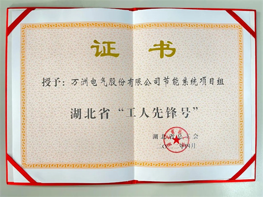 日前,從湖北省總工會獲悉,萬洲電氣節能系統項目組被授予“湖北省工人先鋒號”榮譽稱號。