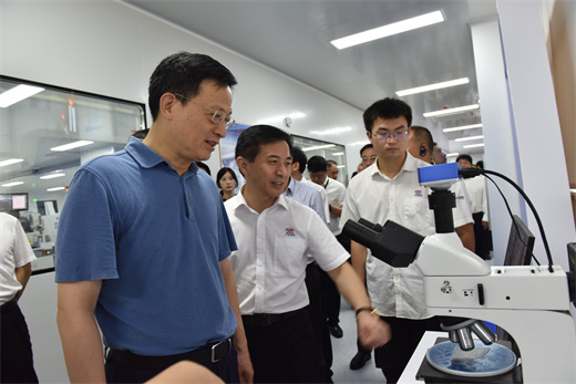 9:40分左右,在光電工廠一樓大廳,觀摩團(tuán)領(lǐng)導(dǎo)首先觀看了光電工廠宣傳短片。隨后,在趙總的陪同下,王書(shū)記、王市長(zhǎng)來(lái)到二樓光電元器件生產(chǎn)線,現(xiàn)場(chǎng)了解光電元器件固晶、焊線、整形等工序的生產(chǎn)工藝和流程。現(xiàn)代化的萬(wàn)級(jí)潔凈生產(chǎn)車間、國(guó)內(nèi)領(lǐng)先的自動(dòng)化、智能化光電產(chǎn)品生產(chǎn)線、5G鏈接全流程制程工藝技術(shù)……王書(shū)記不時(shí)駐足觀看,現(xiàn)場(chǎng)體驗(yàn)光電產(chǎn)品紅外感應(yīng)核心科技。趙總向王書(shū)記匯報(bào)了萬(wàn)洲光電子產(chǎn)品的技術(shù)水平、市場(chǎng)領(lǐng)域和國(guó)內(nèi)前三甲的行業(yè)地位。在LED智慧照明生產(chǎn)線,觀摩團(tuán)領(lǐng)導(dǎo)觀看了LED節(jié)能照明設(shè)備的生產(chǎn)流程,智慧節(jié)能燈具、橋梁隧道亮化工程、樓宇道路景觀亮化等應(yīng)用場(chǎng)景絢爛多彩,讓觀摩團(tuán)領(lǐng)導(dǎo)領(lǐng)略到云川之光和“襄陽(yáng)造”的無(wú)限魅力。