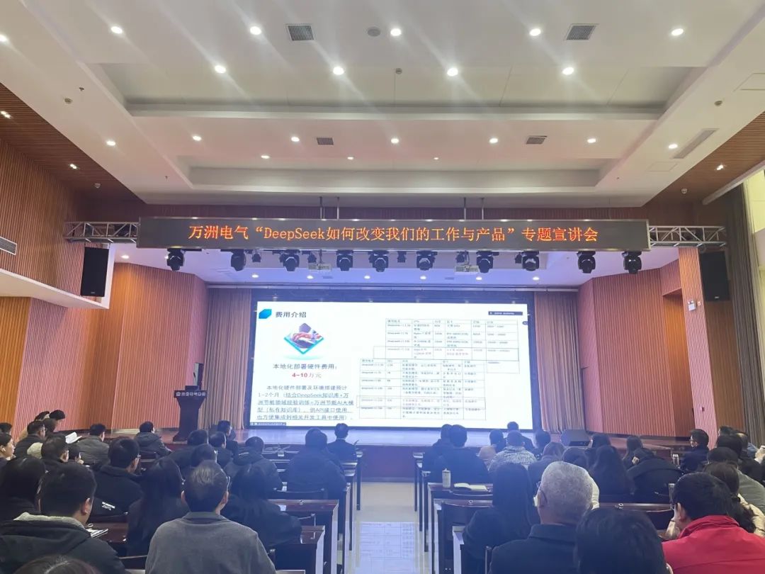 科技有溫度,創(chuàng)新無邊界。2月20日下午,萬洲電氣在一樓多功能廳召開“Deepseek如何改變我們的工作與產(chǎn)品”專題宣講會,萬洲電氣董事長、總經(jīng)理趙世運(yùn)、萬洲電氣副總經(jīng)理李明輝等領(lǐng)導(dǎo)出席會議。