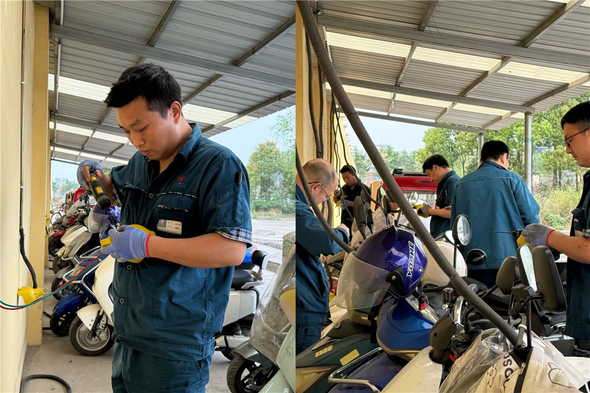 在改造現(xiàn)場(chǎng),黨團(tuán)員代表聽從指揮、分工協(xié)作、配合默契,有條不紊地穿管固定、連接線頭、線槽卡位,經(jīng)過2個(gè)多小時(shí)的奮戰(zhàn),順利完成了停車棚充電插座的改造升級(jí)。大家發(fā)揚(yáng)了不怕苦、不怕累的精神,不僅解決了充電線路隱患,保障了用電安全,也描繪了一道萬(wàn)洲黨團(tuán)亮麗的風(fēng)景線。