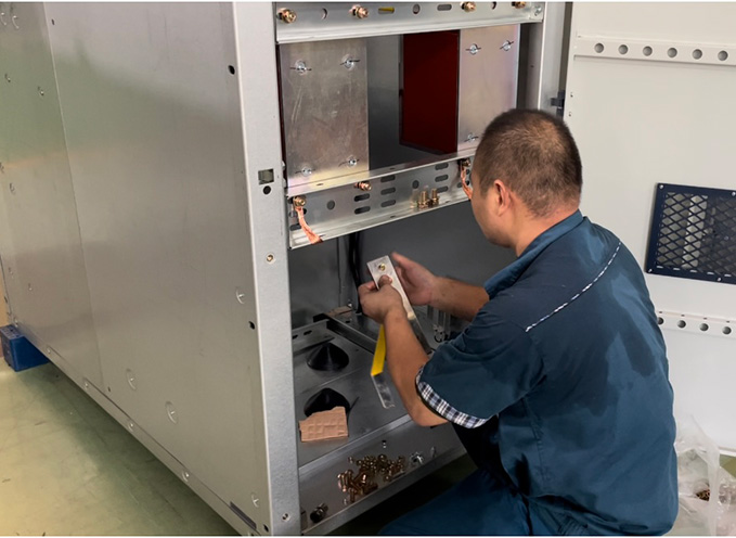 比賽開始,生產(chǎn)車間瞬間變身“比武場”,一場技術(shù)與速度的較量火熱上演。機裝班、線裝班、老人組、新人組同臺競技,各展所長。參賽選手們在規(guī)定的時間內(nèi),按照工藝流程緊張比拼,折彎布線力求精準(zhǔn),機裝操作有條不紊。橫平豎直的線路、嫻熟利落的動作,充分展示了參賽選手扎實的技能功底,每個人都攥著一股勁,力爭速度第一、質(zhì)量最佳、工藝最優(yōu)。