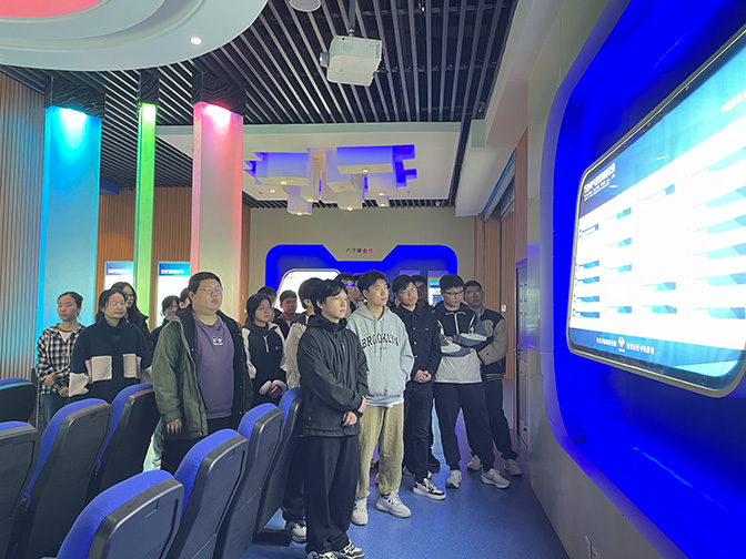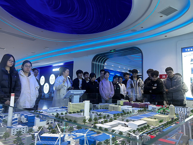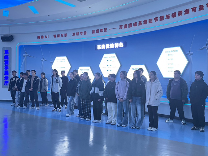 實(shí)習(xí)第一天,同學(xué)們首先參觀了公司廠區(qū),在一樓文化展示廳,創(chuàng)立之初的使命擔(dān)當(dāng)、以人為本的企業(yè)文化、碩果累累的國(guó)牌榮譽(yù)、深耕節(jié)能的行業(yè)標(biāo)桿,通過(guò)參觀讓同學(xué)們對(duì)萬(wàn)洲有了全方位認(rèn)知。在WOES節(jié)能系統(tǒng)演示廳,萬(wàn)洲重大科技創(chuàng)新產(chǎn)品——智能優(yōu)化節(jié)能系統(tǒng)的研發(fā)歷程、優(yōu)勢(shì)特色、應(yīng)用領(lǐng)域及未來(lái)發(fā)展吸引了同學(xué)們駐足觀看,并饒有興趣地現(xiàn)場(chǎng)體驗(yàn)操作系統(tǒng)。